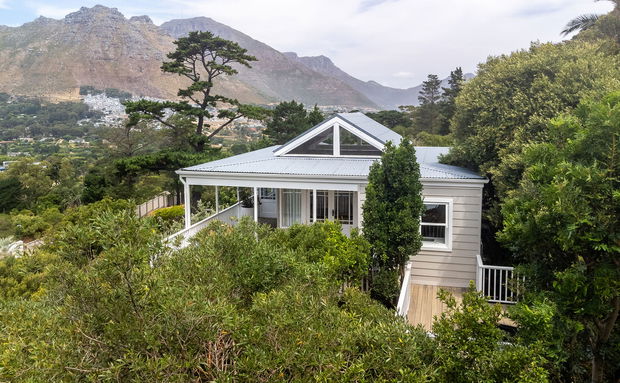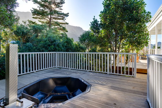 Step outside onto the wrap-around deck and enjoy panoramic views of the Hout Bay valley — perfect for morning coffee or sunset cocktails.